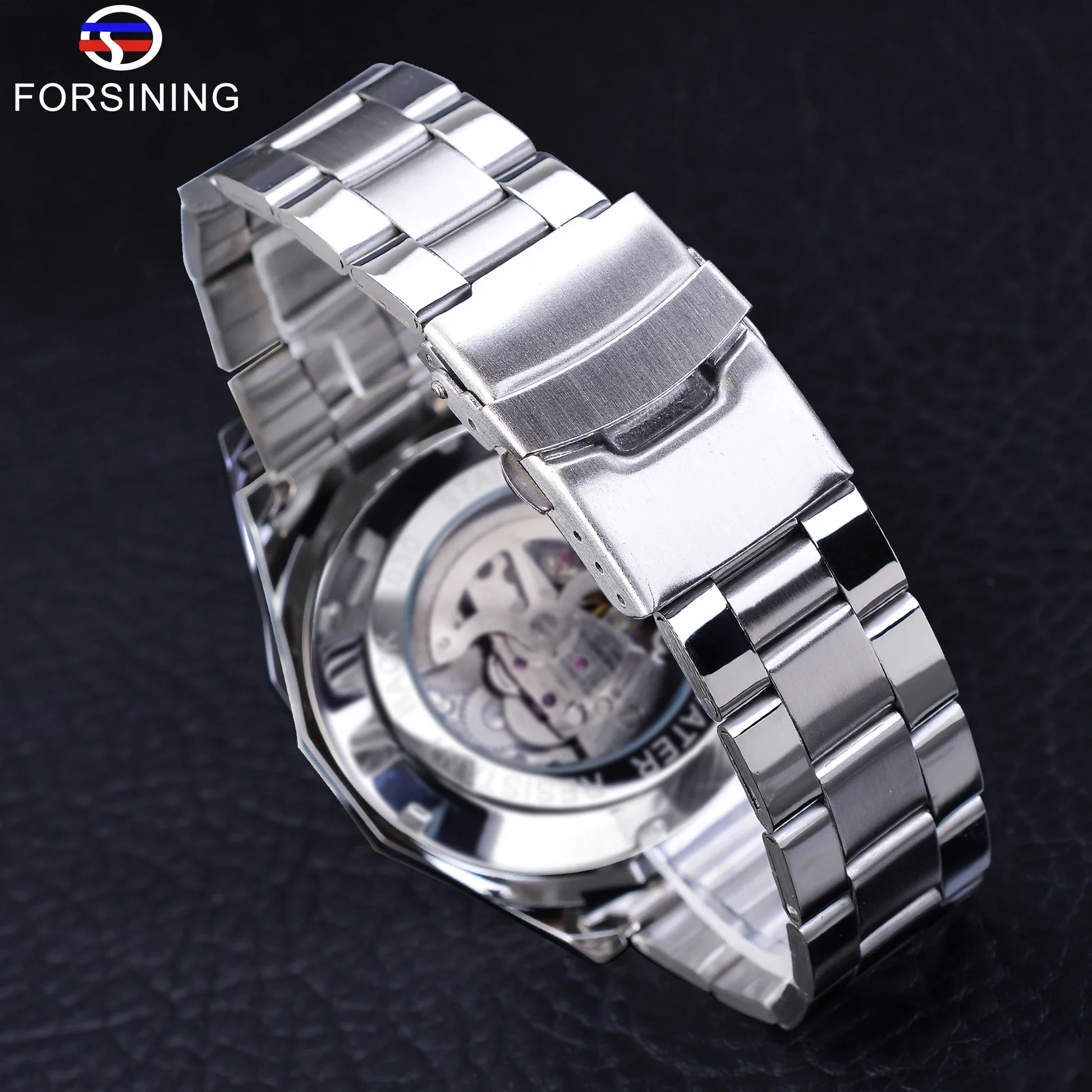 Forsining 2021 Stainless Steel Waterproof Mens Skeleton Watches Top Brand Luxury Transparent Mechanical Sport Male Wrist Watches