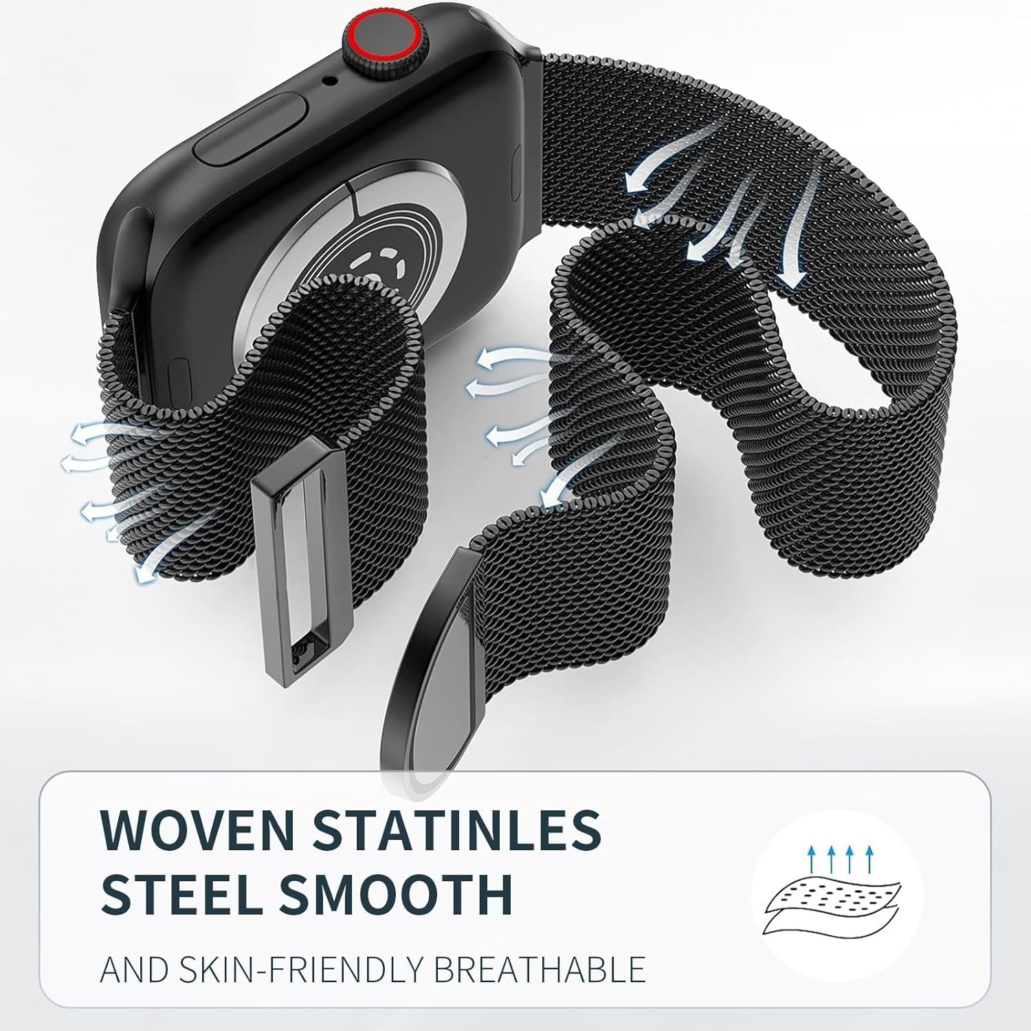 - Adjust as You Wish: The magnetic closure design allows the apple watch band to be as tight or loose as you like, easily adjusted to a comfortable fit for either small or large wrists, plus the magnet is super strong and holds the band in place easily throughout the day, so you won’t have to worry about it falling off. NOTE: Suitable for wrist size 4.72-8.66inch,(12cm-22cm). Test the length of your wrist before ordering.
